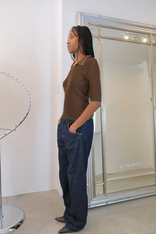 Issey Miyake Pleats Please Brown Quarter Sleeve