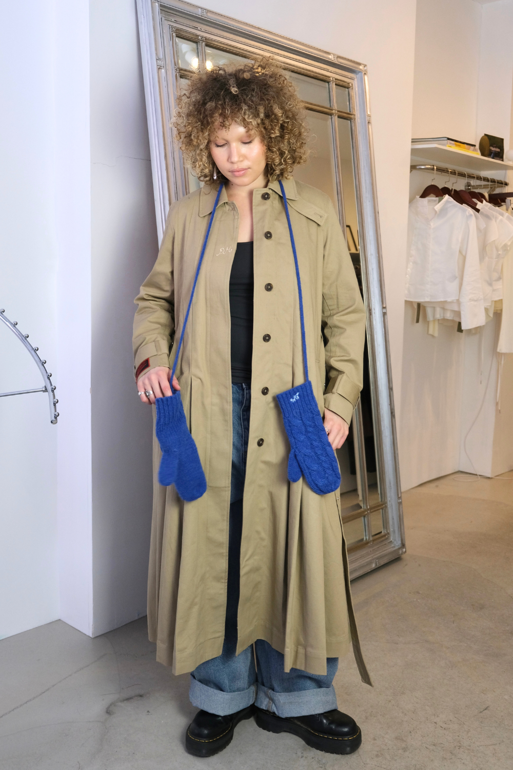These vibrant cable knit mittens bring both warmth and playful styling to cold‑weather wardrobes. They feature a classic cable texture, tonal DM embroidery, and a practical string that threads through your coat to prevent loss.