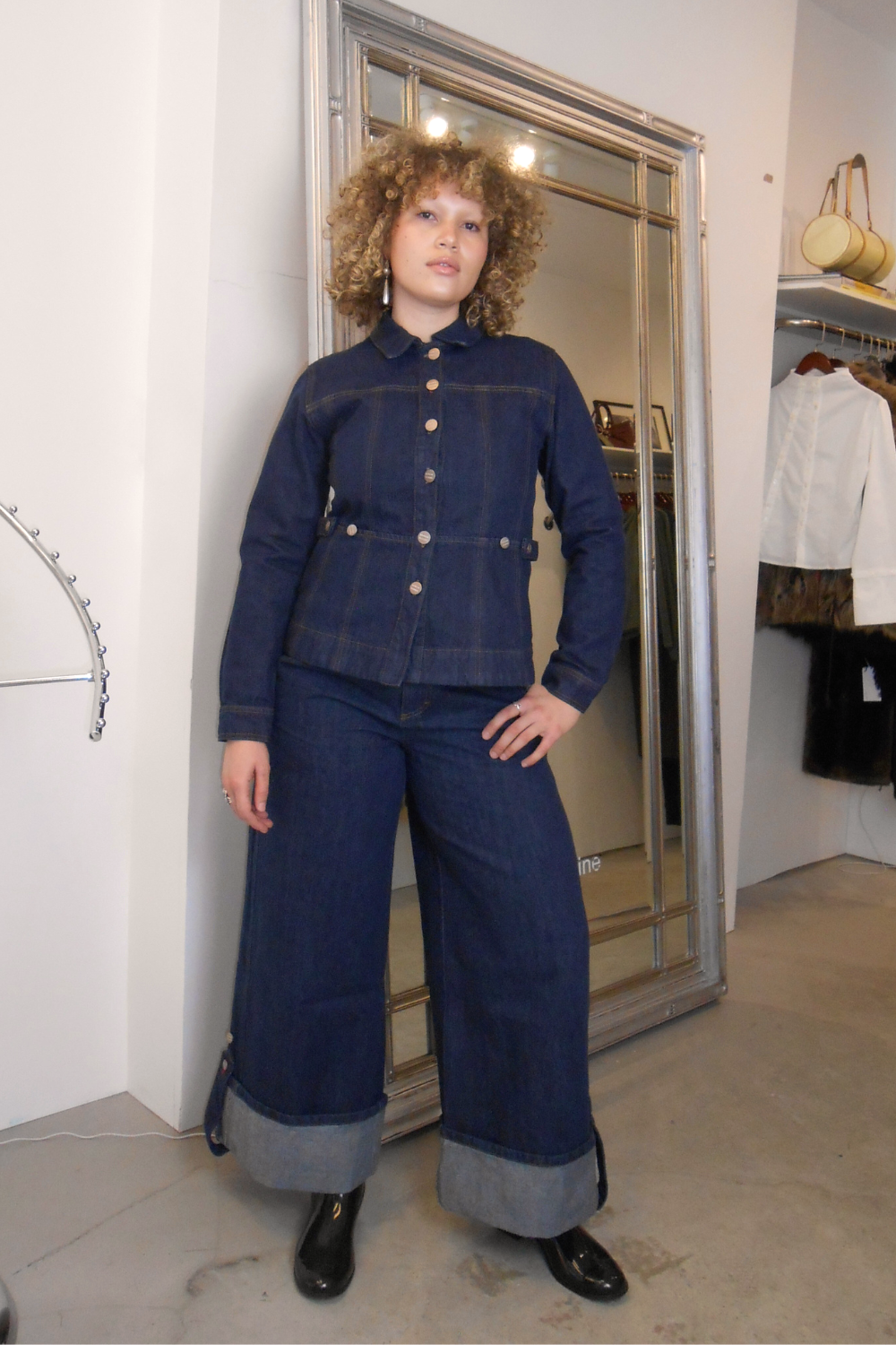 The Darbie Shirt is crafted from dark engineered raw-wash denim that offers a structured yet relaxed fit, giving classic workwear energy with contemporary appeal. Finished with a contrast collar and durable 100% cotton construction, it’s a versatile piece that stands out on its own or layered over tees and dresses.