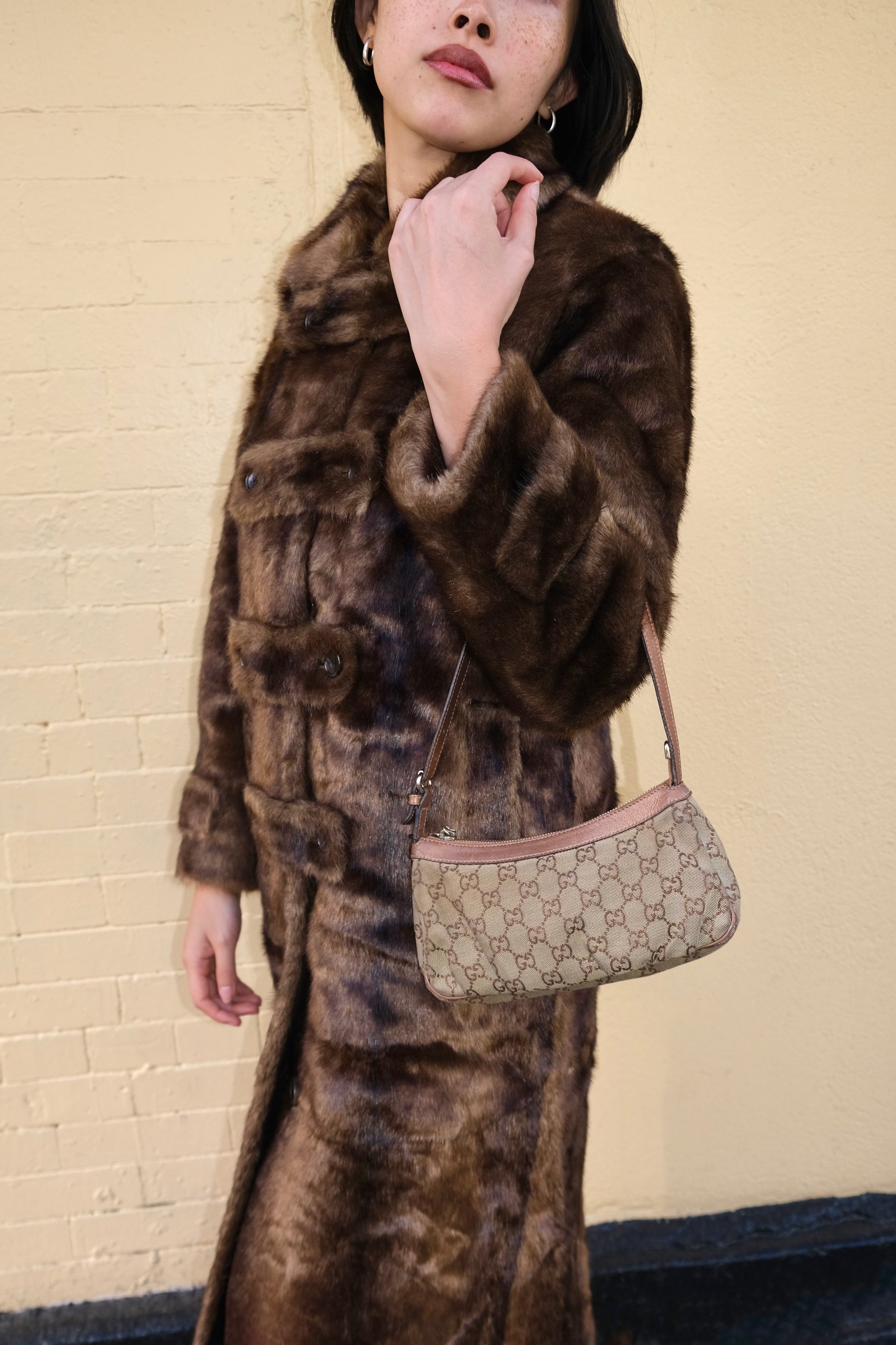 Faux Fur Tab Toggle Coat in Brown