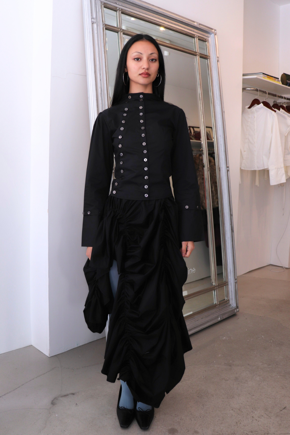 Elevate your wardrobe with Caspar the Label's Long Sleeve Poet Shirt in Black, crafted with elegant mother‑of‑pearl buttons and a versatile silhouette perfect for both casual and refined outfits.