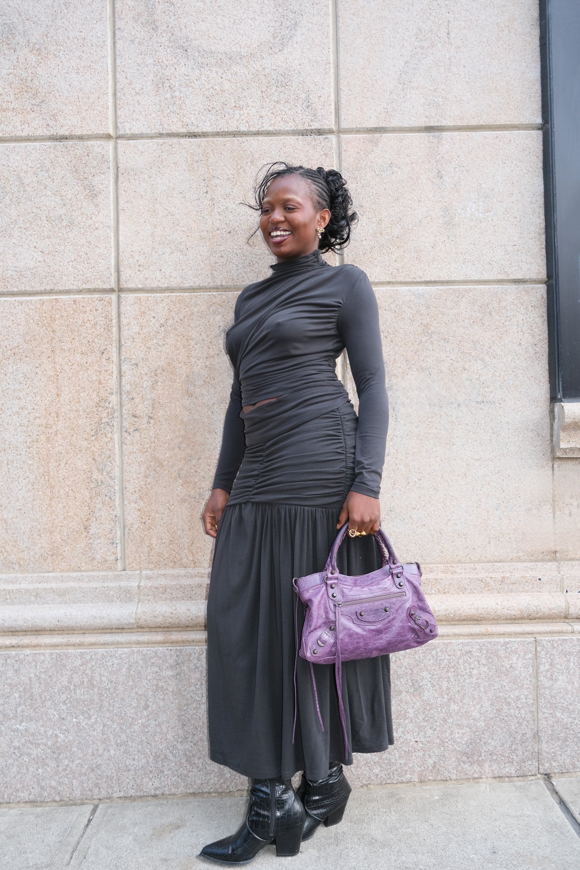 Defined by its draped, asymmetrical cut and subtle cutouts, the Moonlight Top perfectly balances edge and everyday comfort. The long sleeves and high neckline feature gathered detailing that flatters and contours the body, designed to take you seamlessly from day to night.