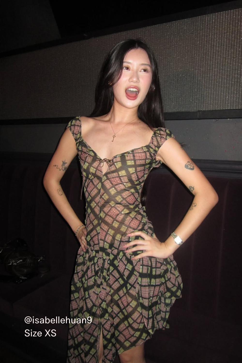 This dress is a goth fairy's dream. Crafted from semi-sheer chiffon in purple and black tartan, it features a fitted bodice that transitions to a flouncy, asymmetrical skirt and an open-back detail for movement and personality. Lightweight and edgy yet feminine, it’s ideal for occasions where you want a memorable, fashion-forward look without sacrificing comfort. Pair with the matching tights to complete the tartan fantasy.